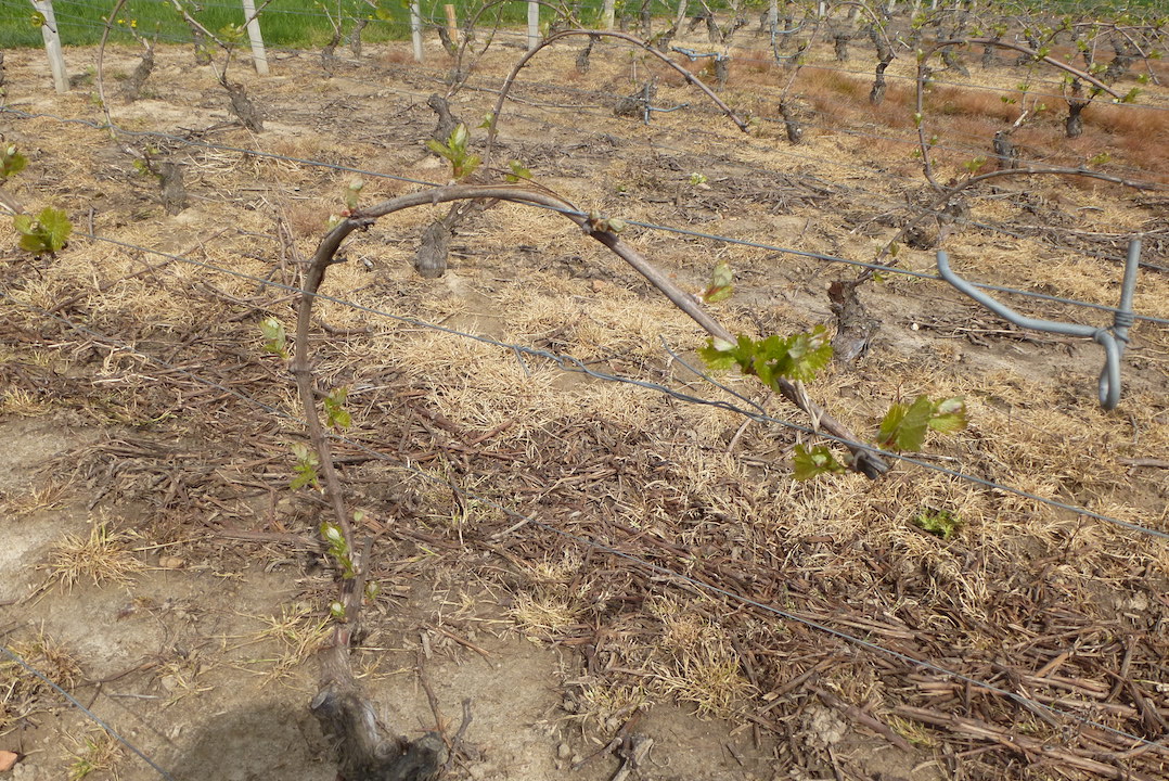 Lorsque la vigne commence à pousser au stade de feuilles étalées, on enlève les bourgeons inutiles le long des cornes, ainsi que les rejets appelé aussi « gourmand » qui se situe au pied de la souche. Cela permet de limiter la zone de feuillage au cœur du cep et de gagner du temps sur la taille de l’année d’après.