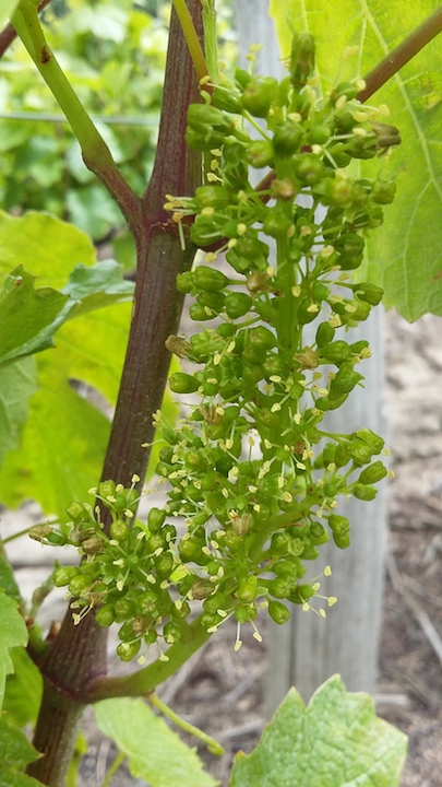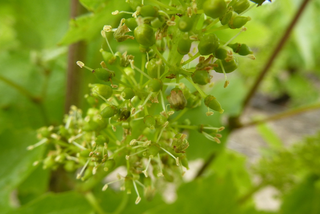 Fin mai, début juin, une étape très importante se déroule : la floraison. Un bon déroulement de la floraison (3 à 5 jours s’il fait beau) augure d’une belle récolte. A l’inverse, s’il pleut et qu’il fait froid sur la fleur, les graines vont avorter : ce sont les phénomènes de coulure et de millerandage.
