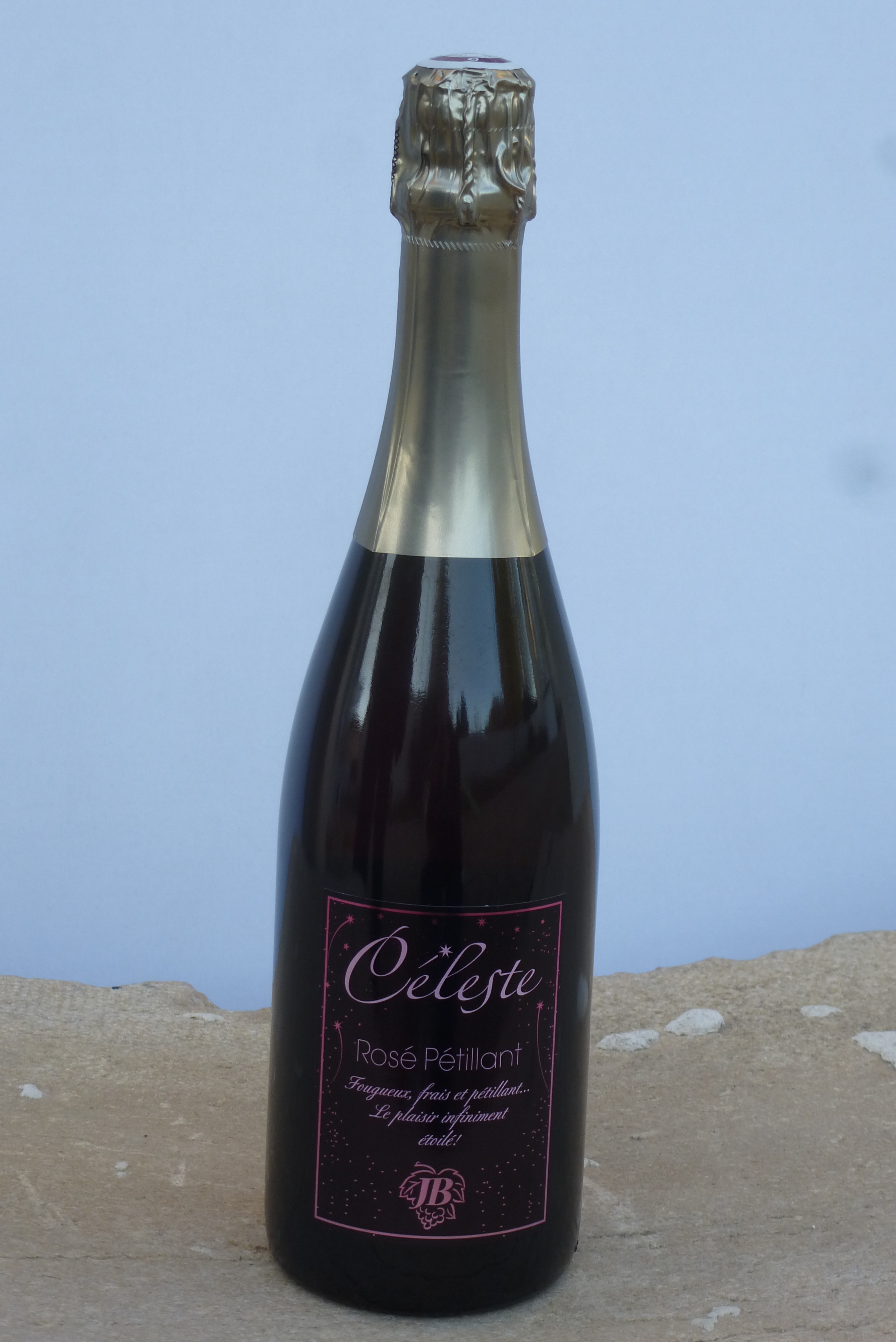 Vinification : Notre Céleste est ramassé à la main pour un meilleur respect de la vendange et une plus grande qualité de jus. Il est pressé comme notre rosé au bout de 6 à 12 heures de macération afin d’obtenir sa couleur. La fermentation se produit en bouteille afin que celle-ci se bloque naturellement avec la pression aux alentours de 7 à 8 ° d’alcool obtenu. C’est la fermentation qui permet d’obtenir naturellement les bulles et c’est le sucre qui ne s’est pas transformé en alcool qui donne ce côté doux au vin.